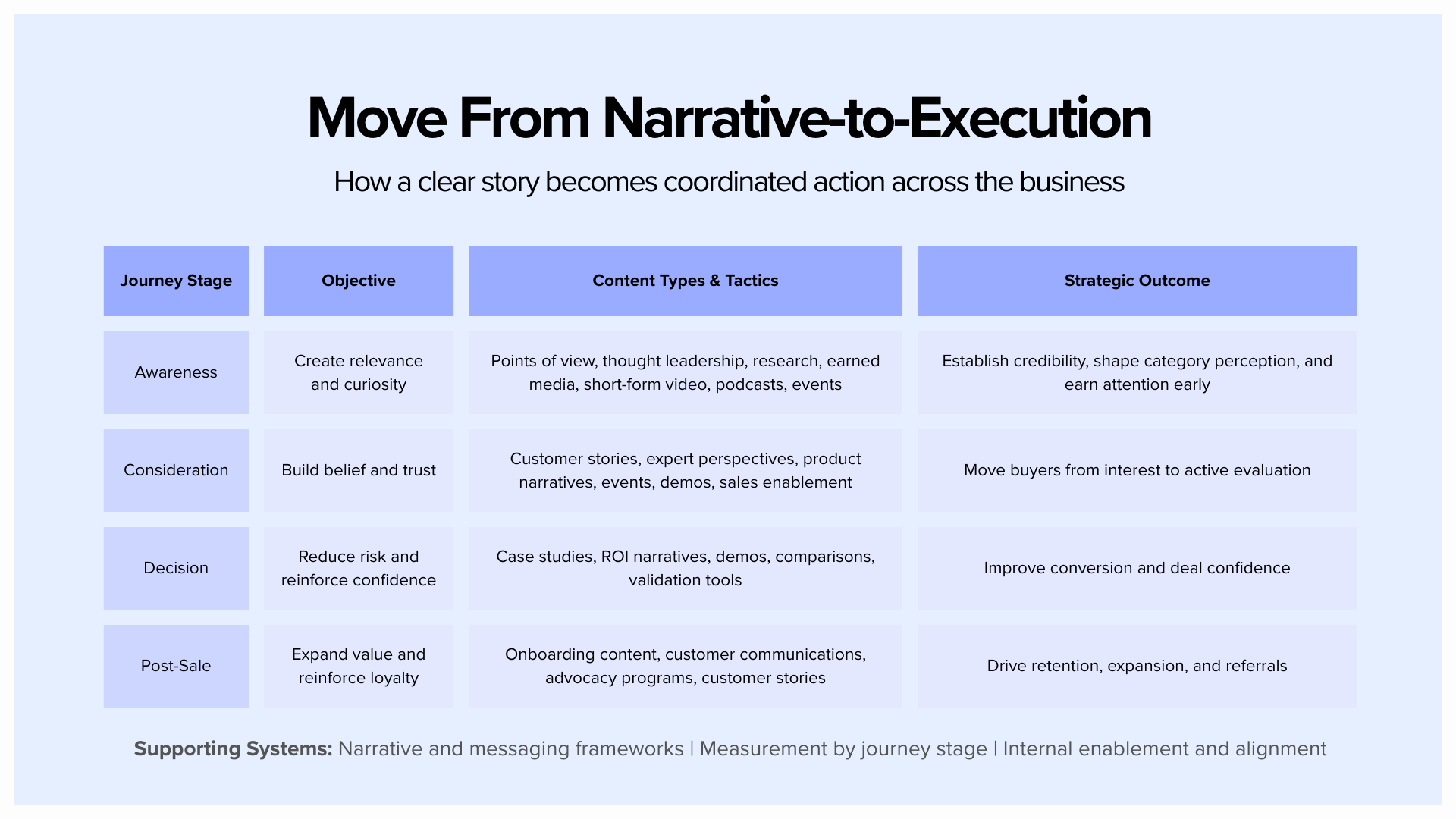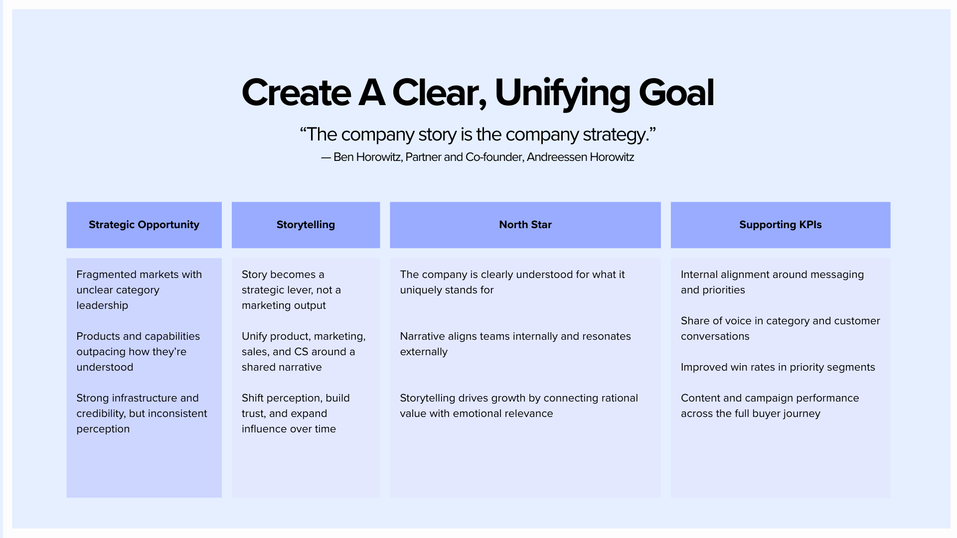 A strong and aligned narrative North Star aligns teams, accelerates content execution, and creates consistent, differentiated presence in the market.