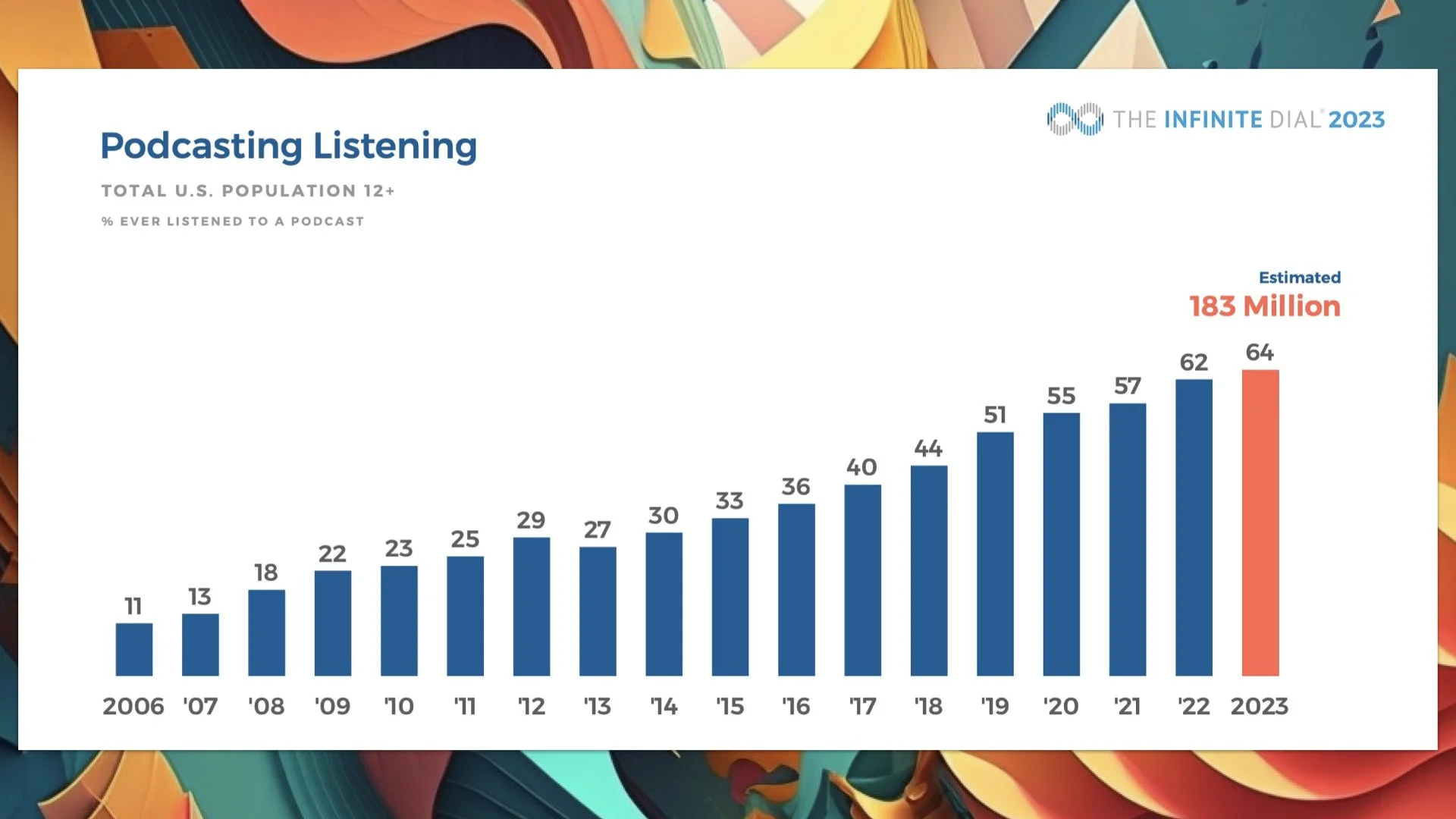 From ancient oral traditions to modern podcasts, the spoken word has an innate ability to captivate and transport us to different worlds. It’s no accident that the New York Times just released an audio only app. And on the New Yorker app the center button is labeled “Audio.” According to The Infinite Dial 2023 report, podcasting is still experiencing significant growth, with 82% of the population being aware of this medium and according to a study by LinkedIn, 79% of B2B marketers believe that podcasts are a valuable content marketing strategy, with 43% planning to increase their podcasting efforts.